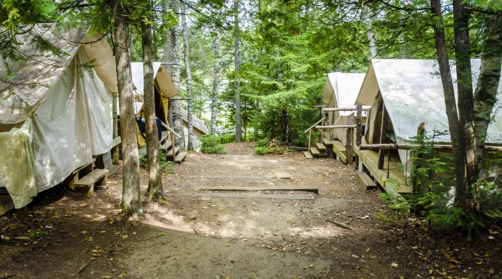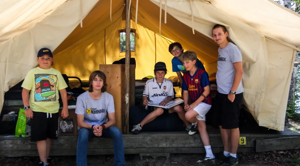 Clean Laurentian water laps at the sandy beach…Towering white birches stand sentinel… Loon calls echo through the star filled night. Nestled on the shore of Petit Lac Nominingue, far from the reach of urban sprawl, our 400+ acre property is fronted by a sandy beach, making our waterfront an ideal spot for swimming, sailing or paddling. Our tentline winds its way through a grove of white birch trees, where the sound of a tetherball game is muffled only by the laughter from a nearby tent-group. Set on raised wooden platforms, all our canvas tents are equipped with a rain fly and roll-up sidewalls, making it an ideal summer home for a small group of boys and their counsellor.